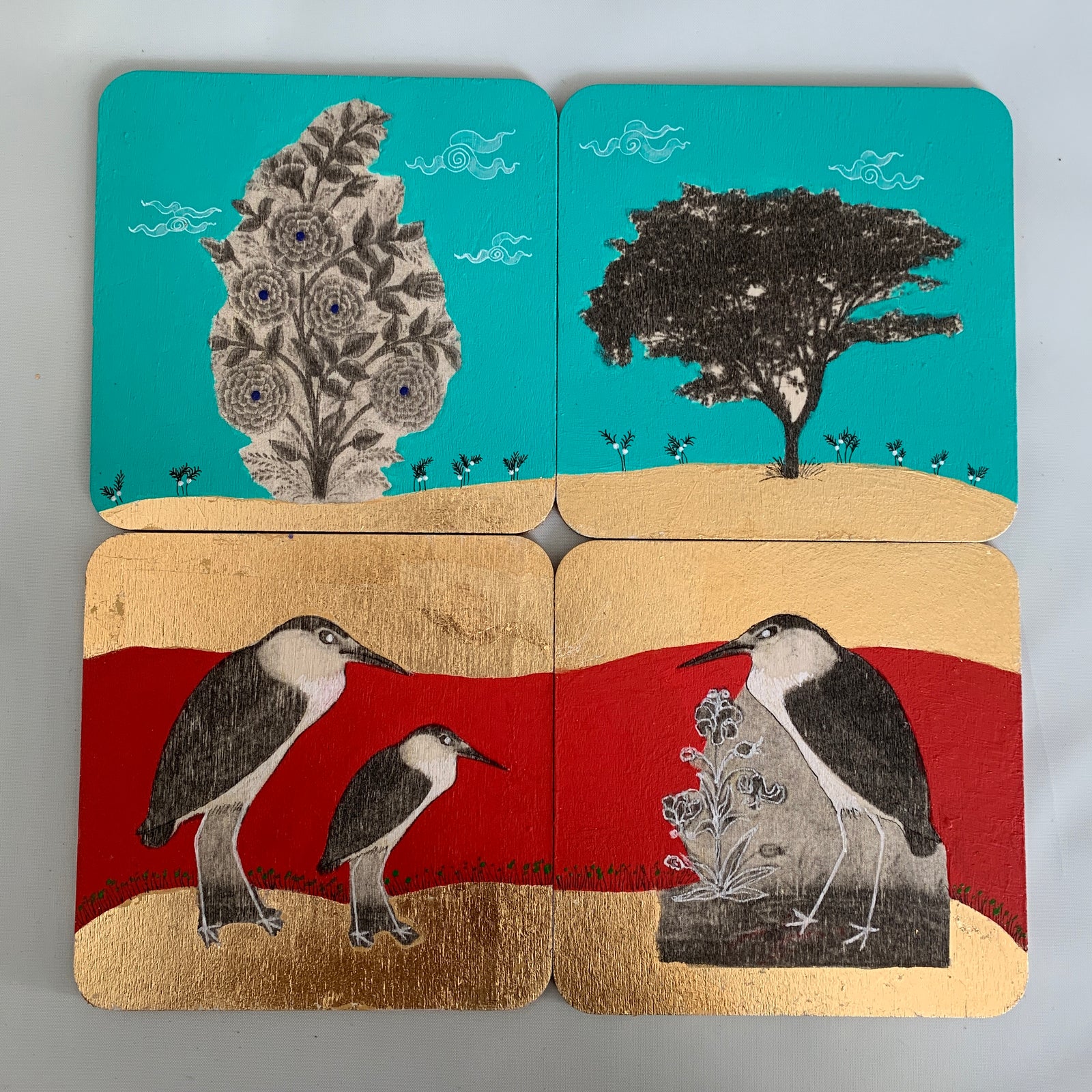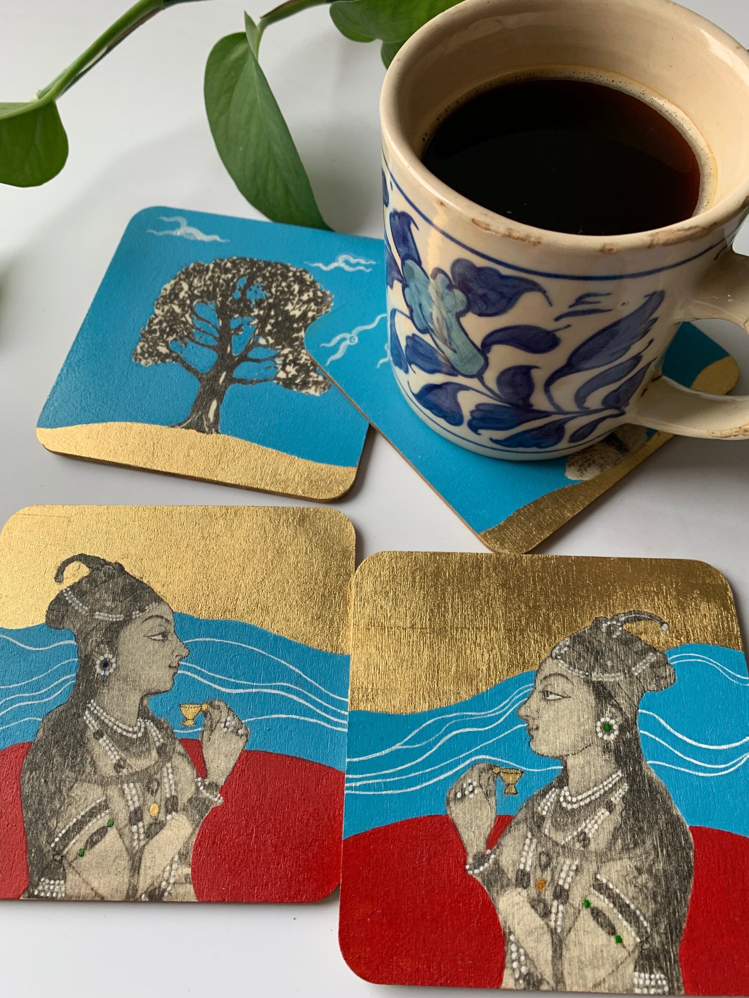 Inspired by the art of Indian Miniature Painting, these wooden coasters are individually hand painted and designed by artist Sumaira Tazeen, who specializes in this traditional art form. The bright...