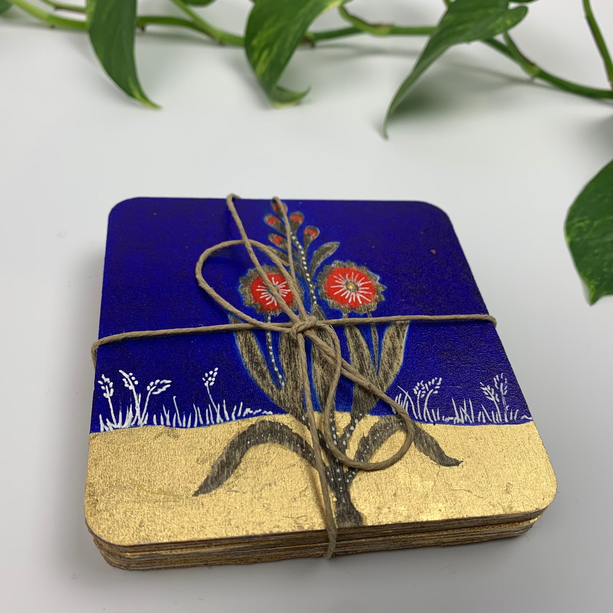 Bring a premium table top experience with this refined set of four hand-painted coasters, crafted from high-quality layered plywood that protects surfaces from scratches, moisture, and everyday spills. Inspired by...
